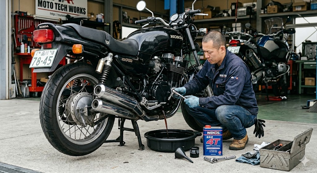 👉 エンジンオイルの選び方は「【2026年版】バイク用「エンジンオイル」の選び方」で解説しています。 👉 チェーン交換の時期・費用は「【2026年版】バイクのチェーン交換費用・時期の目安・ブランド比較」もあわせてどうぞ。 👉 車検の費用・ユーザー車検については「【2026年版】中型・大型バイクの車検費用と「ユーザー車検」のやり方完全ガイド」を参考にしてください。