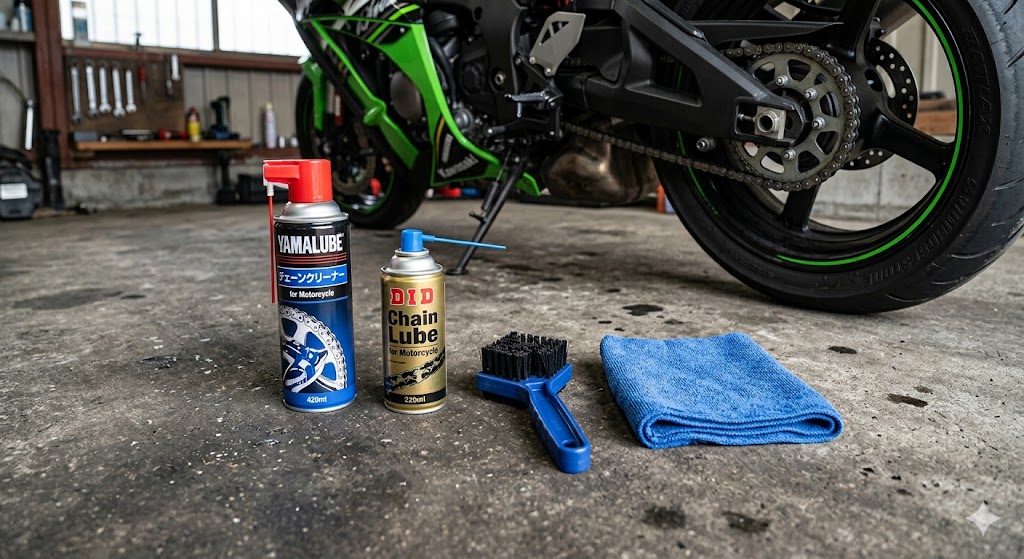 | チェーン専用クリーナー | 汚れ・古いオイルを落とす | 必ず**バイク用(シール対応)**を選ぶこと。パーツクリーナー代用はOリングを傷める |