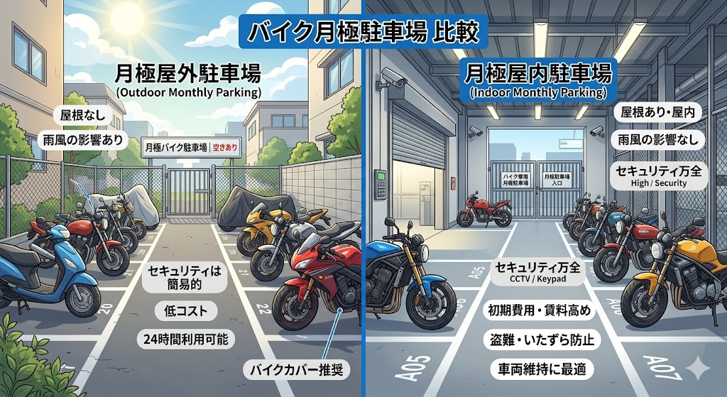 バイクの置き場所・駐輪場選び完全ガイド2026年版|マンション・自宅・バイクコンテナ・月極駐車場の費用比較 バイク駐車場