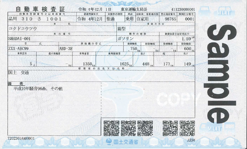 | 自賠責保険証明書(新旧2枚) | 保険会社で新しい期間分を事前に加入・または当日陸運局窓口でも可 |