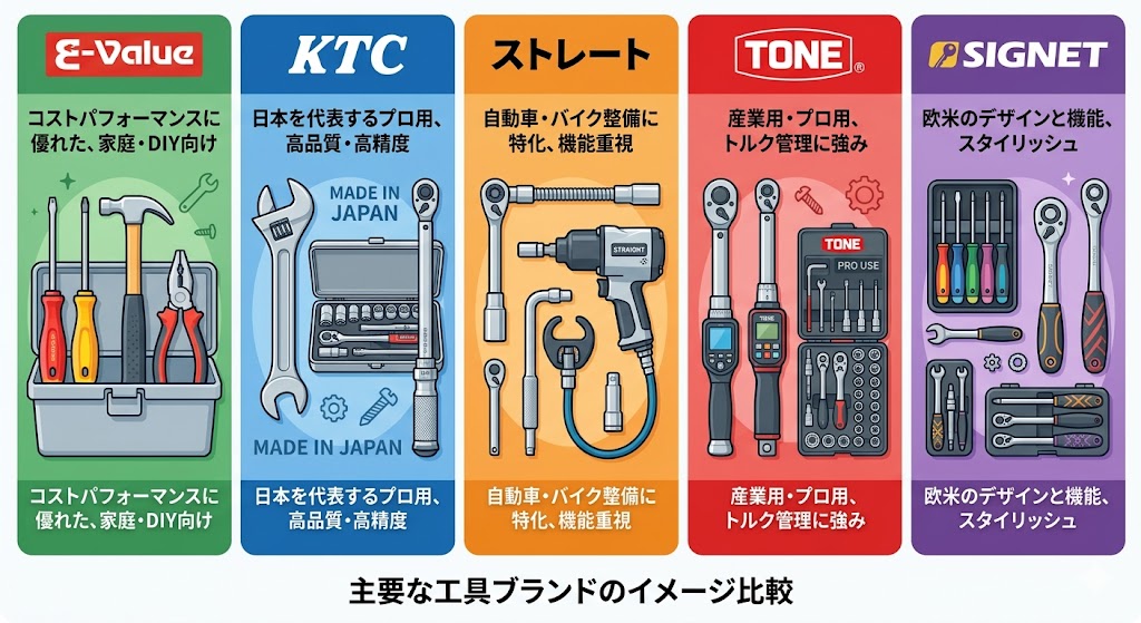 工具ブランドはピンキリです。初心者が迷いやすい主要ブランドの位置付けを整理します。