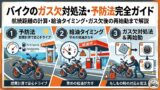 👉 バイクの日常点検全般については「【2026年版】バイクの「寿命」は何キロ?10万キロ超えを目指す日常点検5選と消耗品交換サイクル完全ガイド」も参考にしてください。 👉 チェーンのメンテナンス方法については「バイクのチェーンメンテナンスの頻度とやり方|初心者向け完全ガイド」で詳しく解説しています。 👉 チェーン交換の費用・時期・ブランド比較については「【2026年版】バイクのチェーン交換費用・時期の目安・ブランド比較」もあわせてどうぞ。 👉 バイク初心者が最初に揃える装備全体については「【2026年版】バイク初心者が最初に揃えるべき装備10選」で解説しています。